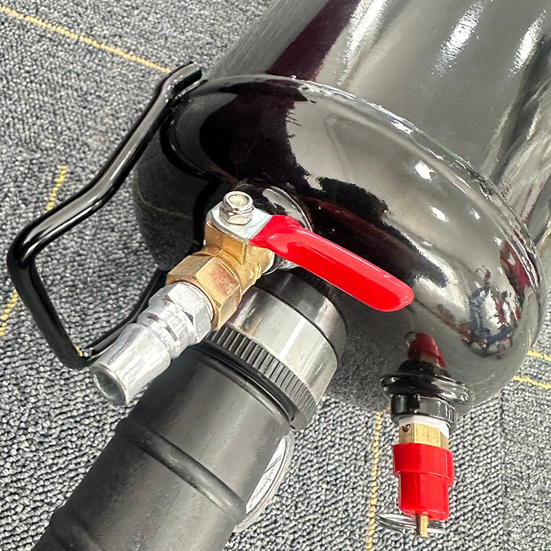 The handheld air tire bead seater is a portable automotive repair tool designed specifically for installing tubeless tires. It generates a powerful burst of compressed air ("blast") in an instant, forcing the loose tire bead forcefully and quickly into the bead seat of the rim, creating an initial seal for subsequent inflation to normal operating pressure.